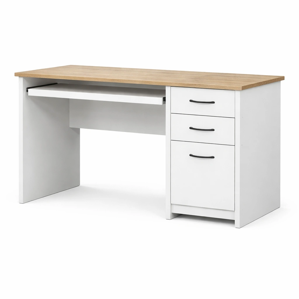 Escritorio blanco con cajonera y tapa de mdf 145x60x75 cm