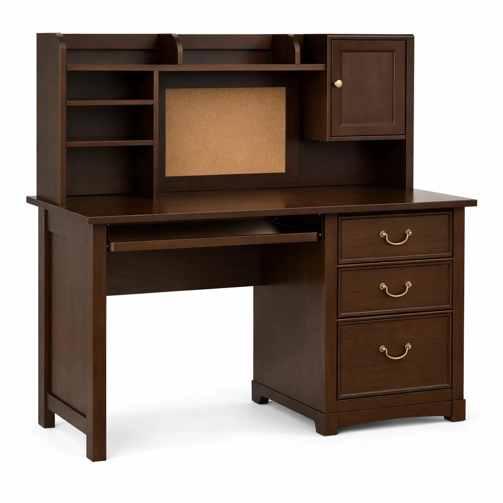 Escritorio de madera con estantería y cajones marrón 120x150x60 cm